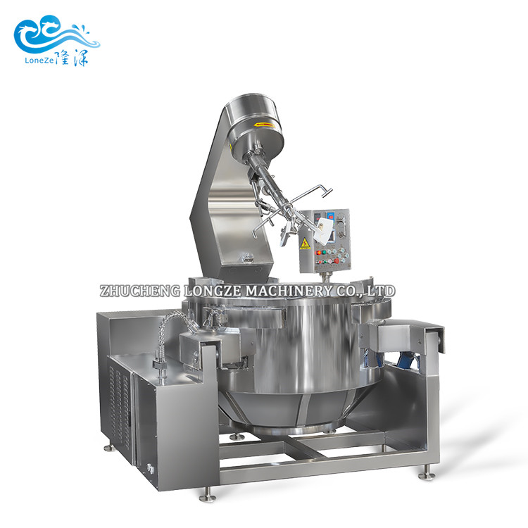 2. Pot turning system: hydraulic lifting method, which realizes hydraulic tilting and pouring after stirring and separating from the pot, which can be tilted at a 90° angle. There is no dead angle for pouring and it is easy to clean and reduce labor intensity.